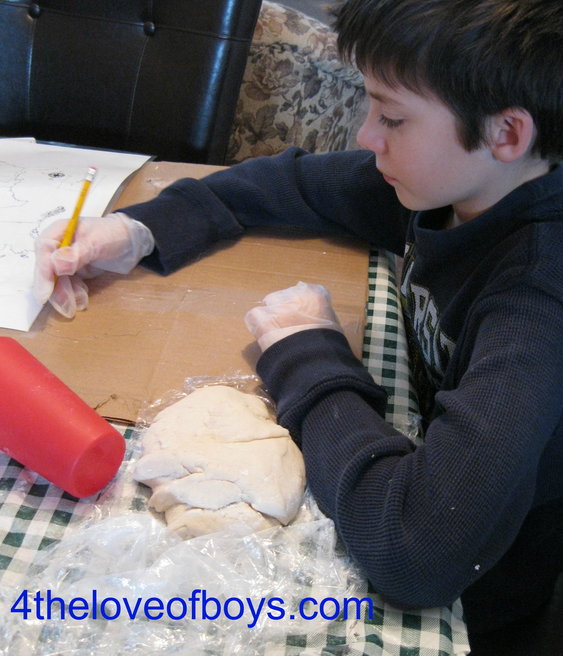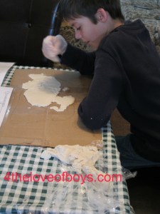 The boys found working adding dough around the edges & then working inward toward the center worked best. Maine was hardest!